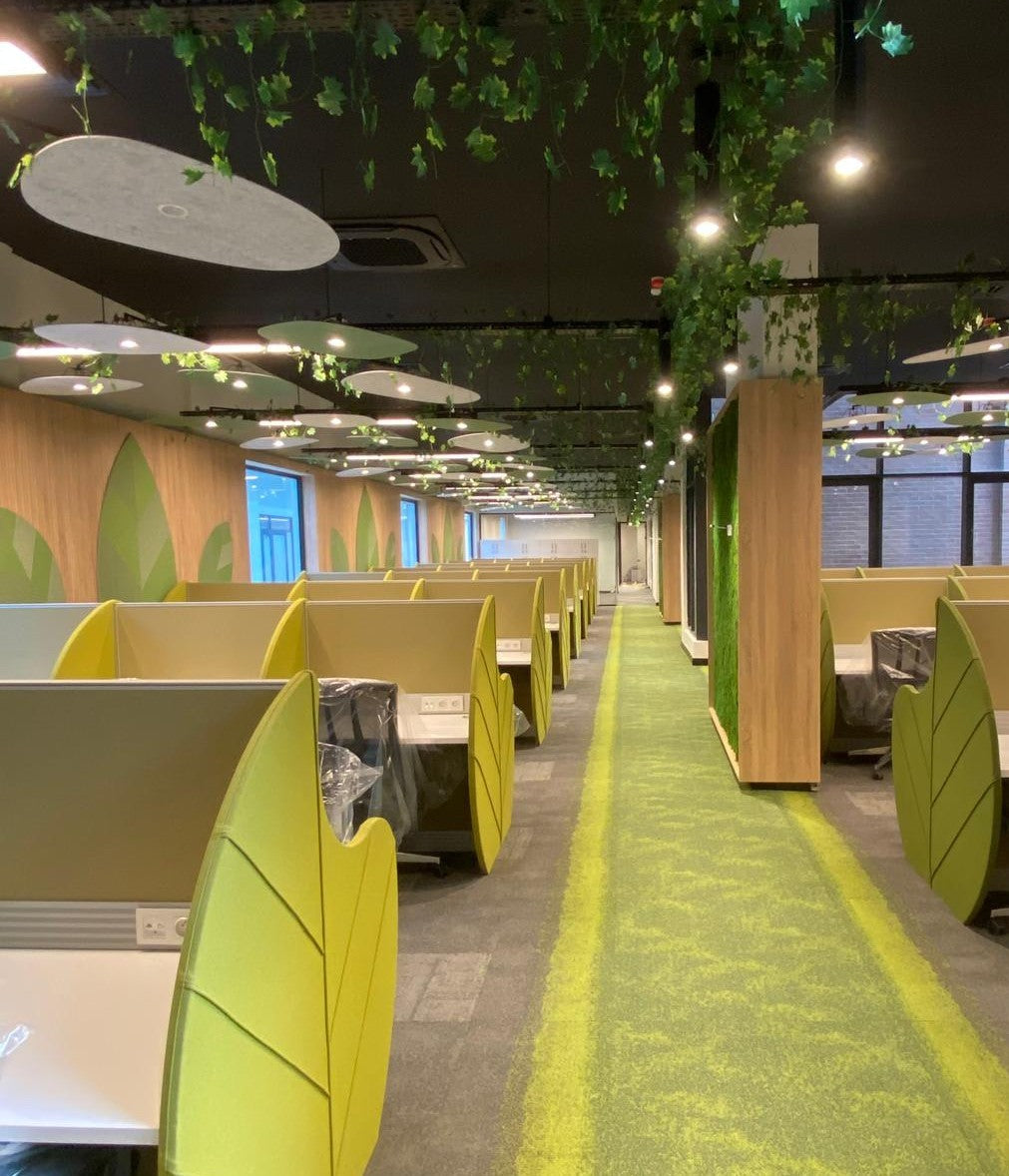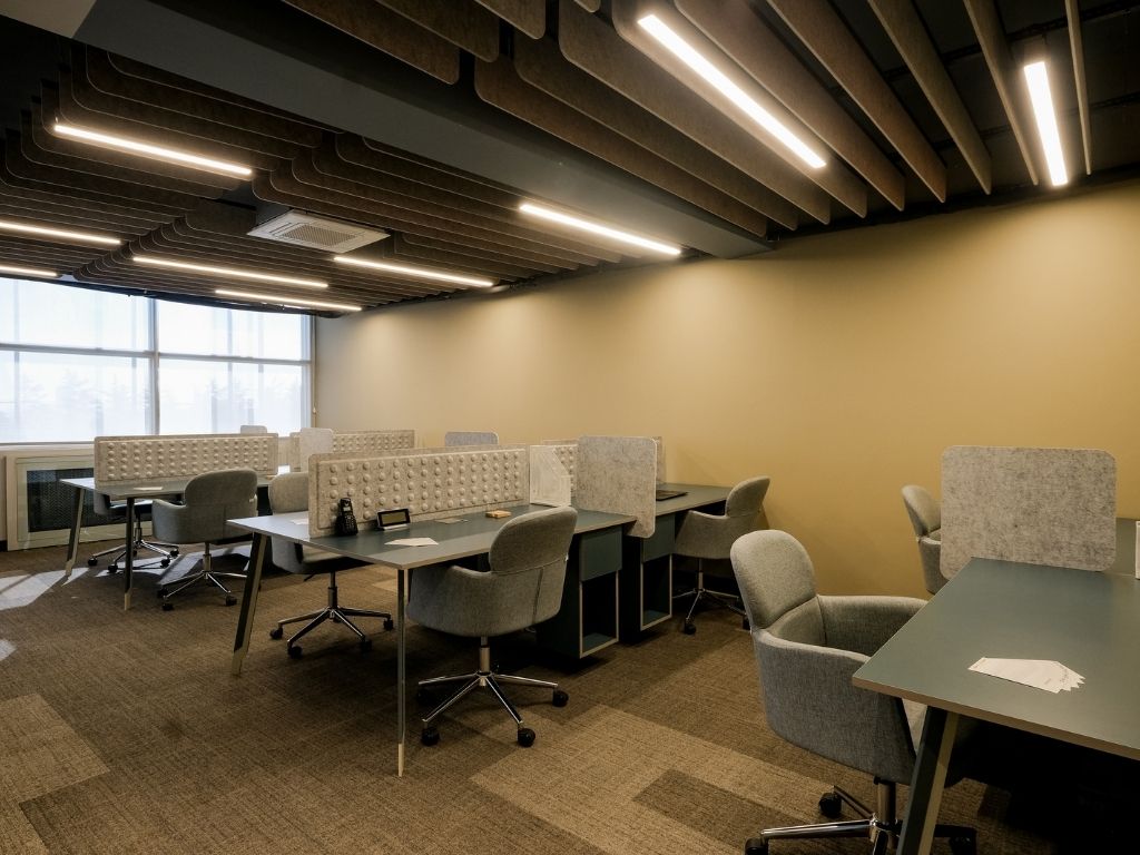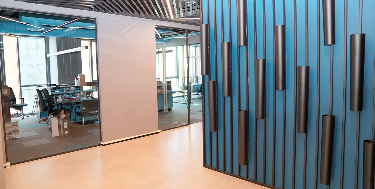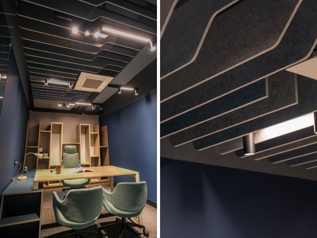 AcousticMod ncluded its own production and design of office furniture, ceiling acoustic applications, and office partition systems in the office design of the project.