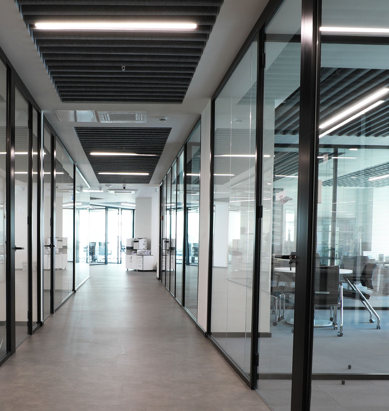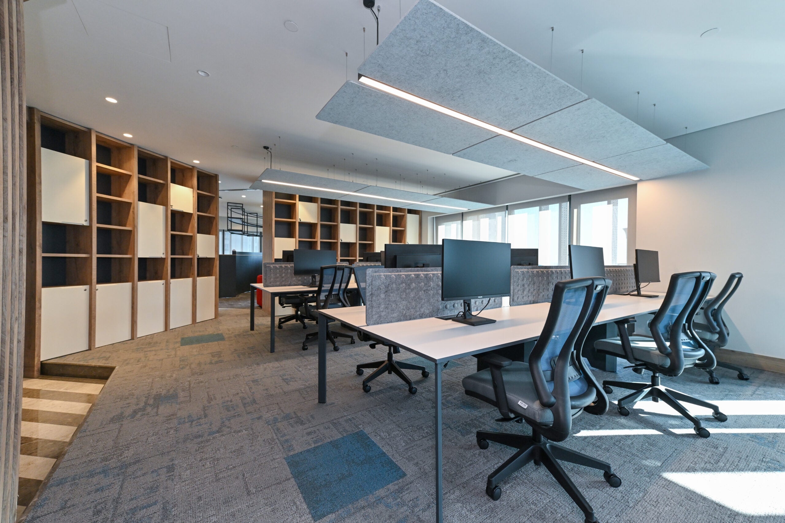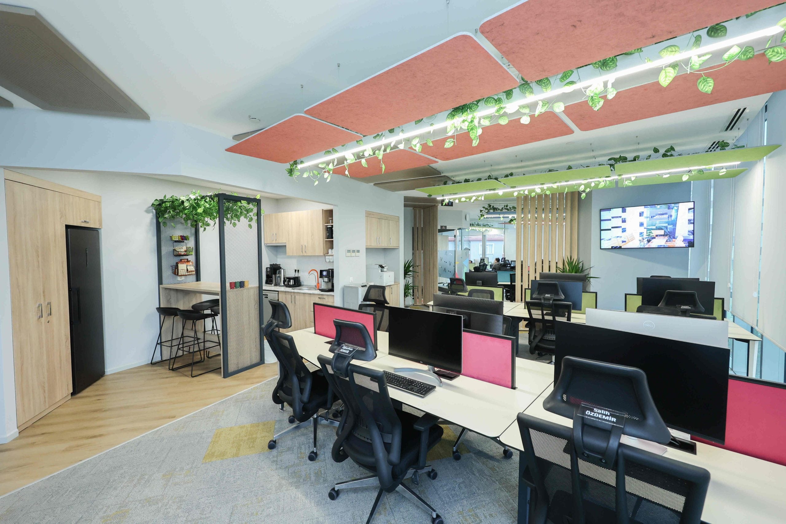 AcousticMod ncluded its own production and design of office furniture, ceiling acoustic applications, and office partition systems in the office design of the project.