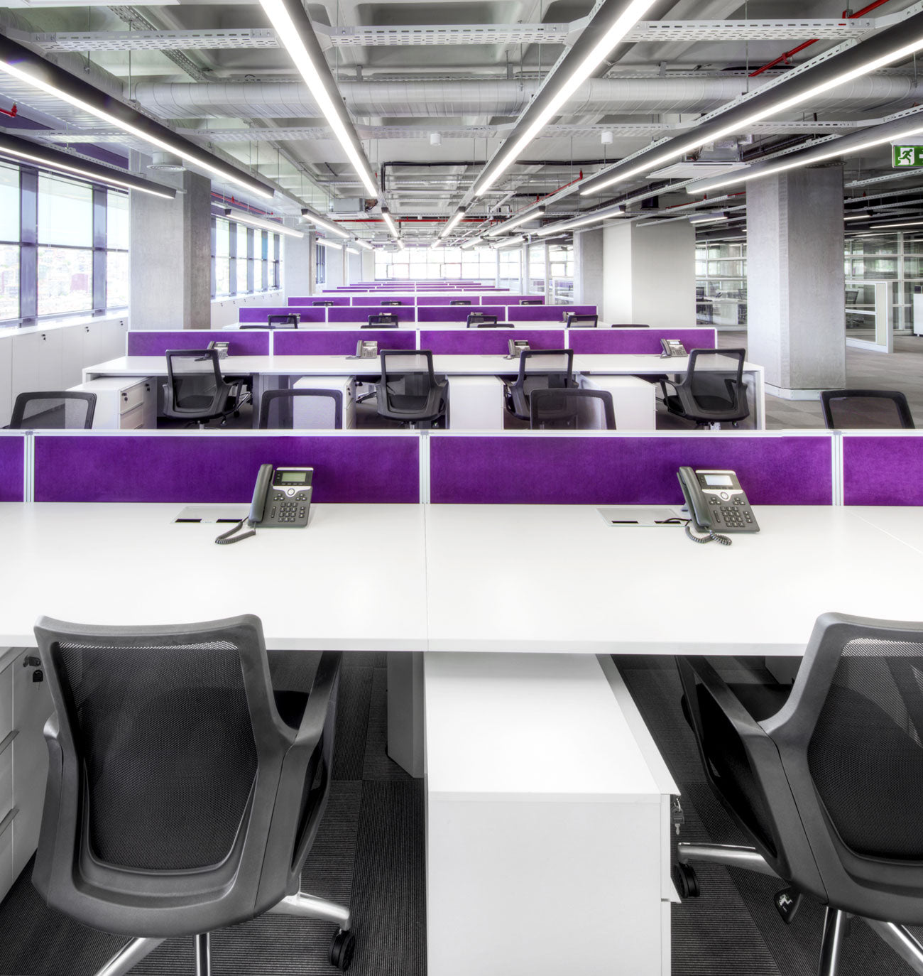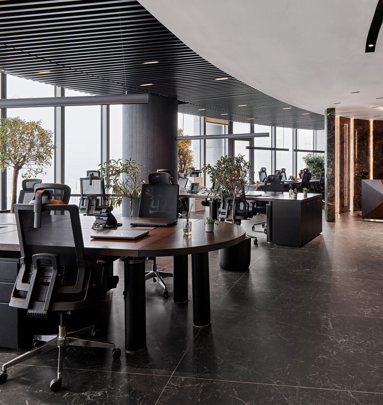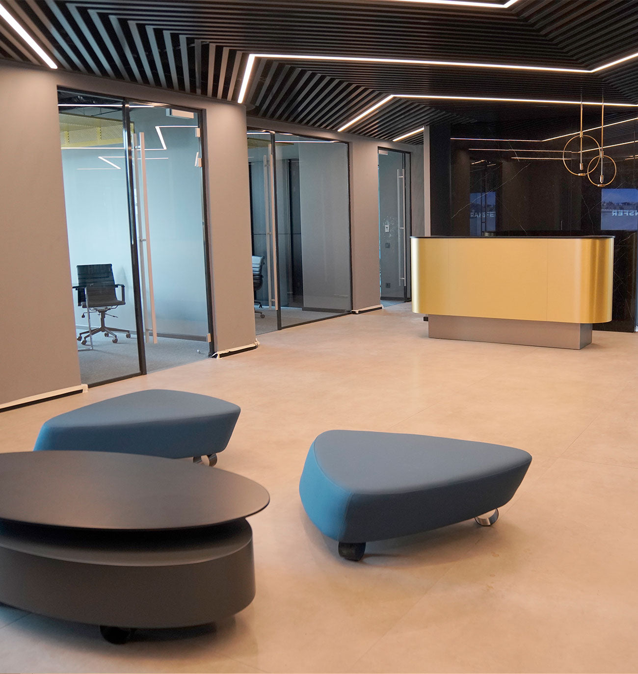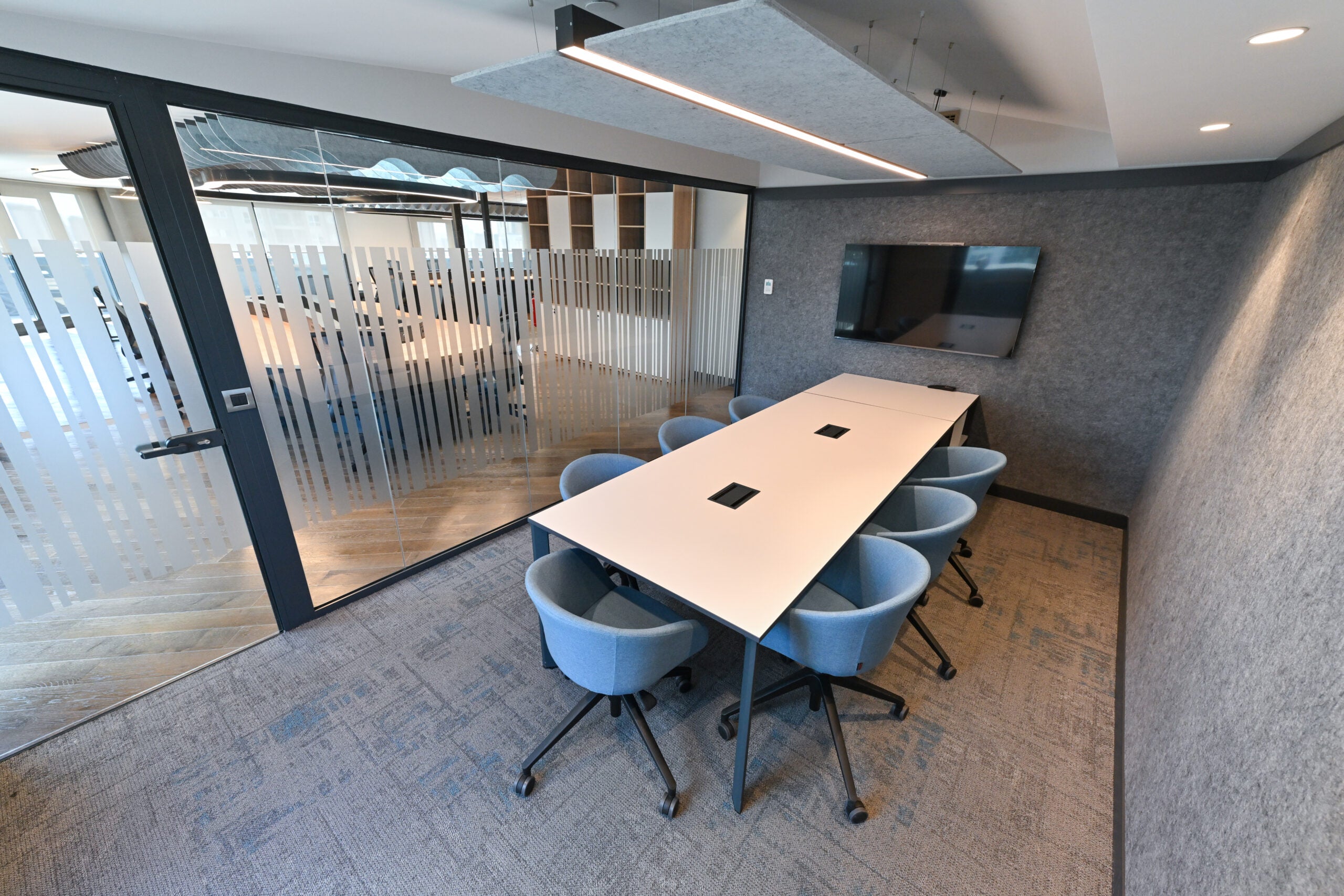 We developed a holistic office design that combines functionality and aesthetics with workspaces, executive meeting rooms, open office solutions and separation systems that ensure space integrity.